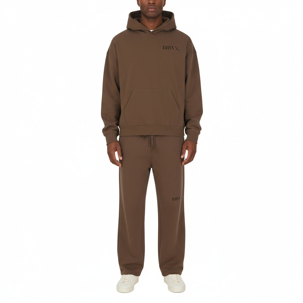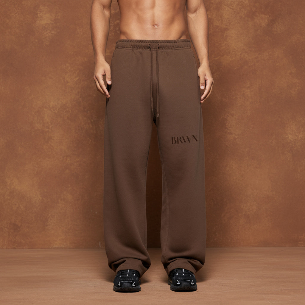 Elevate your everyday with the BRWN. Essential Straight-Leg Sweatpants, crafted from a premium 430GSM heavyweight cotton-blend fleece for structure, warmth, and a refined drape. The espresso-brown shade anchors this piece in quiet luxury, while the minimalist BRWN. logo on the thigh delivers understated distinction.